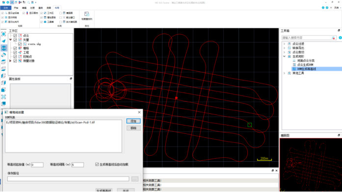 (六)支持自動點云生成DEM,DEM生成等高線等功能。